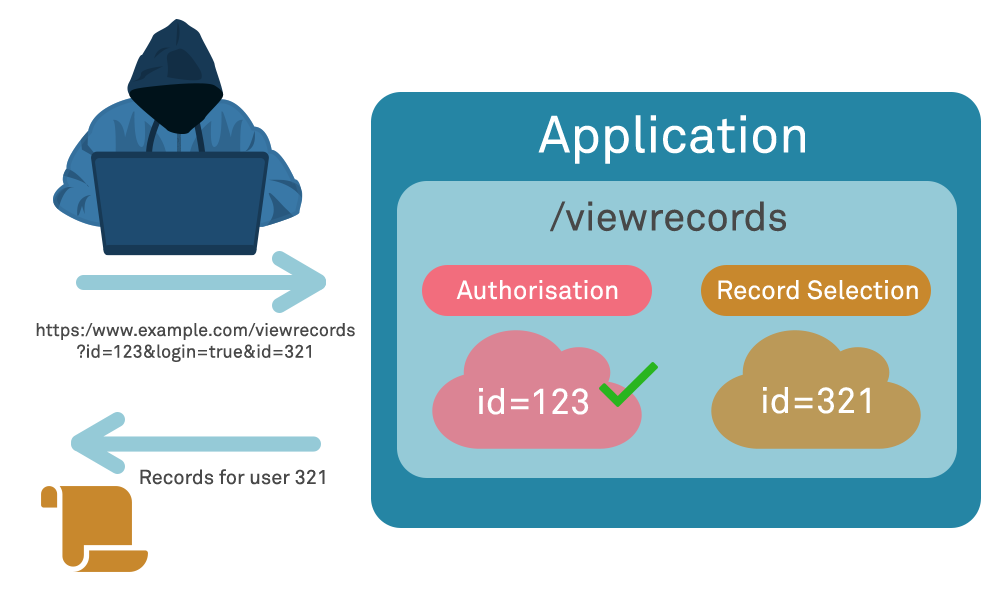 https:/www.example.com/viewrecords?id=123&login=true&id=321
