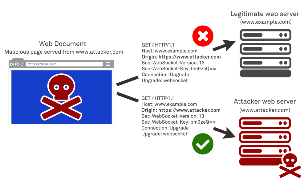 Since an attacker is unable to set or override the Origin header, it is therefore possible for a server to prevent attacker-initiated cross site WebSocket connections from compromised victim browsers. To do so the server must validate the domain in the Origin header and confirm that the page making the request is on a trusted domain. Most typically, this would be the same domain that the server itself is serving pages from (a.k.a the same origin) – i.e. the page making the request to open the WebSocket was (according to the user’s browser) itself served from the server now being contacted to open a WebSocket. If the origins do not match, the server can refuse to open a WebSocket connection and return a 403 Forbidden HTTP response code to the handshake request.