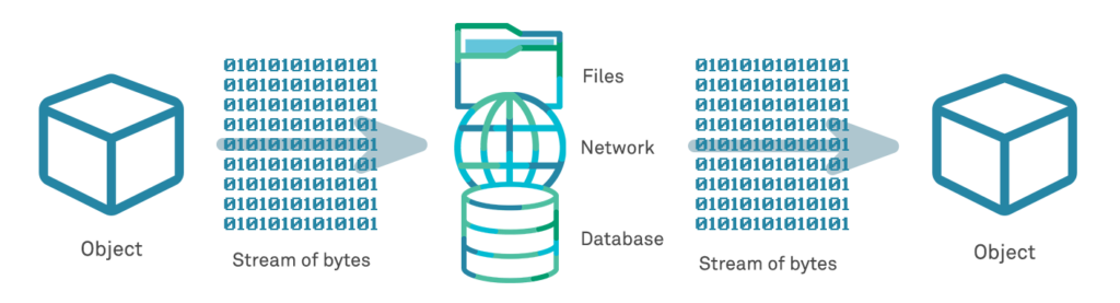 Serialisation allows a language to covert a native object (a stream of bytes) into a primitive data type that can be understood natively by any receiving system. This typically involves the conversion of the object into a string (ASCII characters) or a binary format.