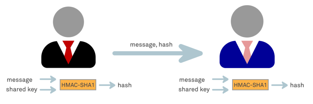 Under this protection measure, the sender of a message runs it through an HMAC algorithm such as SHA-256 to produce a HMAC data tag. The original message and the HMAC tag are then sent to the receiver. The receiver in turn runs the message portion of the transmission through the same HMAC algorithm using the same key, producing a second HMAC data tag. The receiver then compares the first MAC tag received in the transmission to the second generated MAC tag. If they are identical, the receiver can safely assume that the message was not altered or tampered with.
