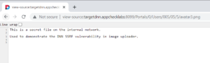 This URL can then be used within the “From URL” option when updating the user’s avatar image. The vulnerable DNN system will follow the redirect and download the response from the target server to the avatar.png file.