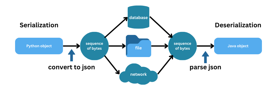 JSON is highly suited to use in data serialization tasks, in which data is translated into a form that is able to be transferred as a byte-stream between two systems that use incompatible data formats for object storage at either end and is therefore often additionally described as being a lightweight data-interchange format.