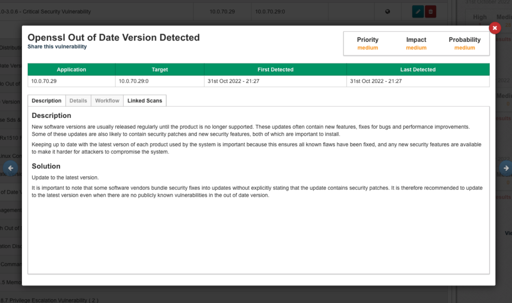 Alongside your regular scans, we recommend performing checks manually across your estate with the command “openssl version” on any host with openssl installed.