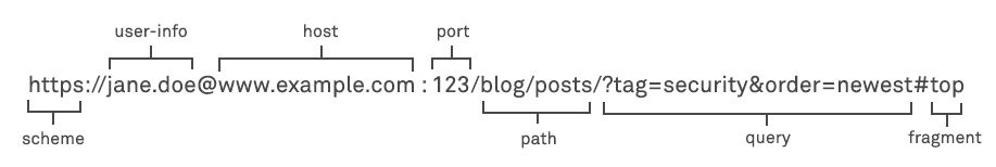 scheme:[//[userinfo@]host[:port]]path[?query][#fragment]