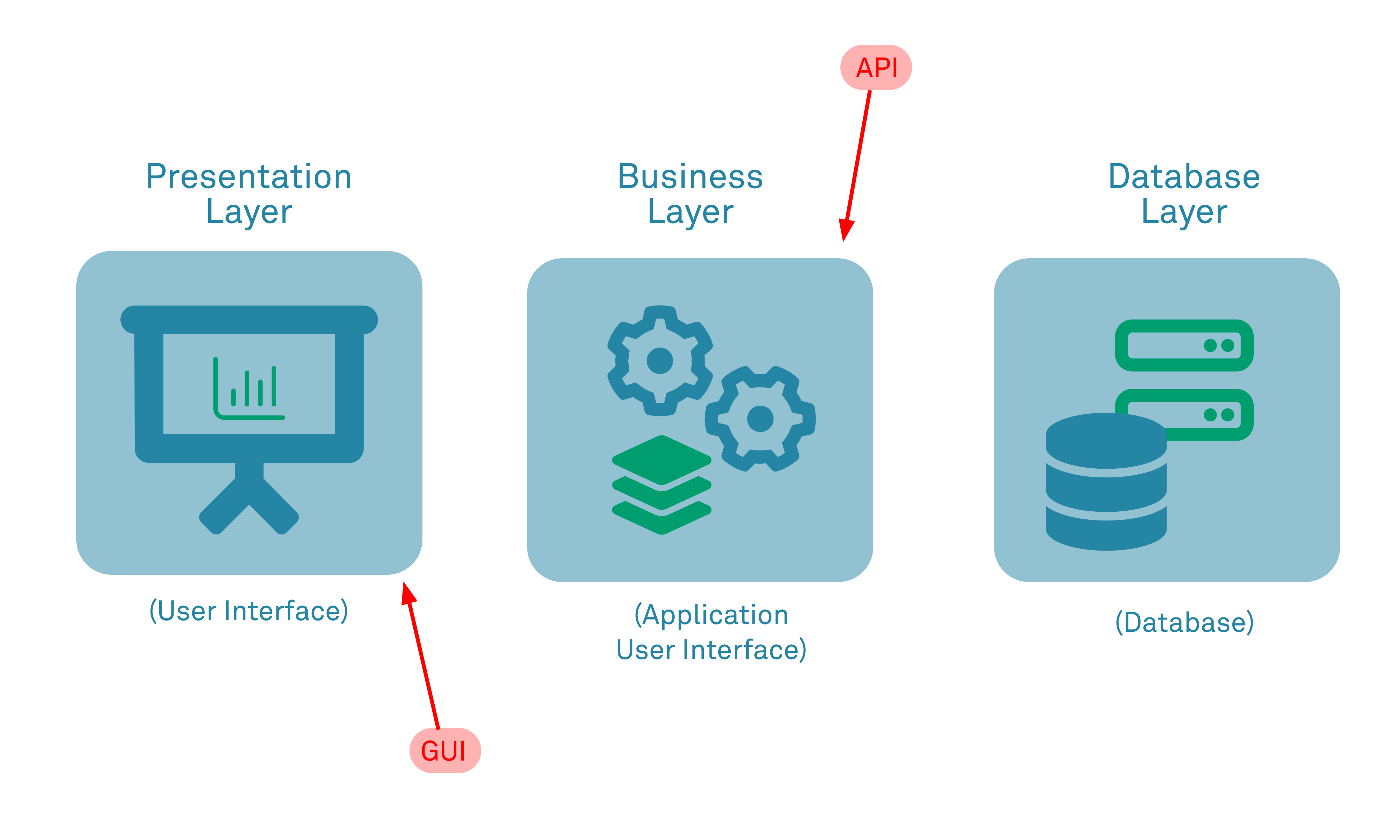 Web applications are traditionally modelled according to a three-tier architecture, consisting of three logical and physical computing tiers: the presentation tier is the user interface and communication layer of the application, the application tier (also known as the logic tier or middle tier) collects and processes information from the presentation tier in line with required business logic, and the data or database tier provides backend storage and management services for the service. Rather than being considered to be an alternative interface at the presentation layer in such a model, APIs are most often implemented as part of the business layer, providing both direct interaction for server-to-server and developer integrations, as well as the middleware for any supported in-house web application interfaces (websites).